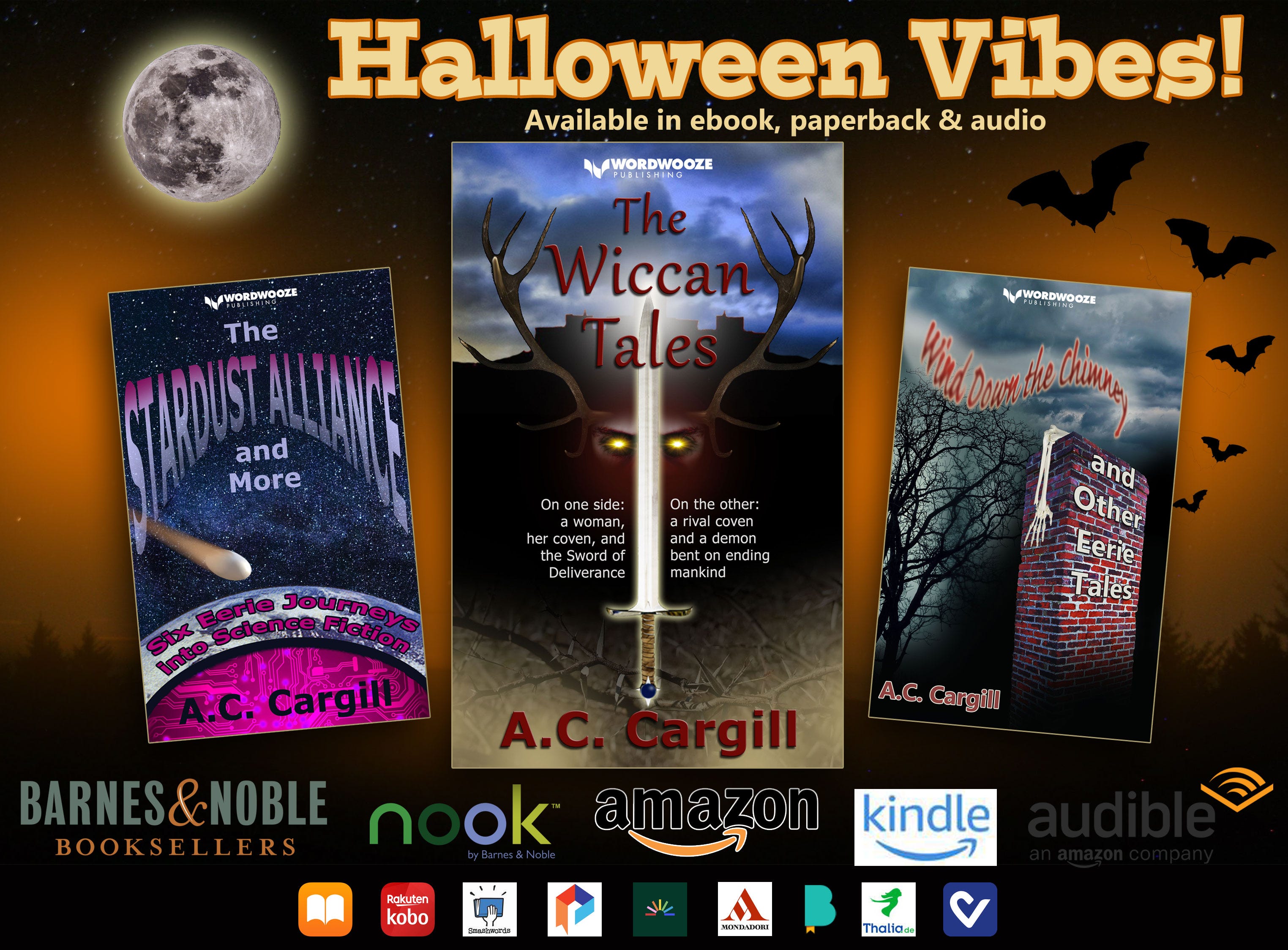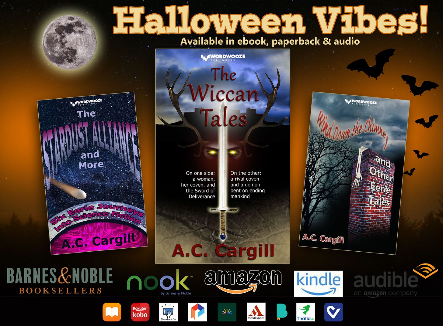 Thanks for reading. Please check out my first book of recently published eerie short stories (ebook, paperback, audio), and my new book of eerie Sci-Fi stories (Kindle and paperback), both from Wordwooze Publishing. (I even designed the covers.) My third book is now out in ebook and paperback: The Wiccan Tales. A real Halloween treat.